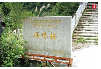 桥头前的石碑上“福缘桥”(图4),而在桥中心的石栏板上刻有三个字,似乎是“得缘桥”。