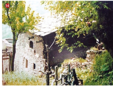 再一处较大的红军遗迹遗址是马岭山红军阻击战场遗址(图14、图15)。1935年8月,红四方面军三十三军九十九师二九七团一个连200余人,在马岭山(草坡乡境内)担任阻击任务,阻击从灌县(今都江堰市)而来尾追的国民党川军“一路军”杨宗礼第十五旅二十七团(团长王澄熙)、二十八团(团长周德仪)和二十九团(团长邹迪僧)3个团的1000余人。30日拂晓,敌军出动飞机投弹30余枚,轰炸扫射红军阵地,敌军步兵分多路向马岭山发起进攻。从凌晨至傍晚,红军打退敌人7次进攻,击毙数百敌人并俘获敌营长1名,以牺牲100余人的代价完成了阻击任务。而今,战场遗址内保存的红军遗迹、遗物有:乡、村苏维埃驻地;红军营指挥所(今朱贵明家)、连指挥所(今朱国富家);红军炊事伙房;坷巴凼凼(红军挖的饮用水塘,引水槽长达千米);防空掩体(10余处当地人称“飞机楼”);红军庙(山王庙,当年红军指挥部);红军梅营长墓;红军班合葬墓;红军战壕以及红军用过的家具器物等,还有“万人坑”(敌人及当地土豪活埋当地300余群众的地点)。
