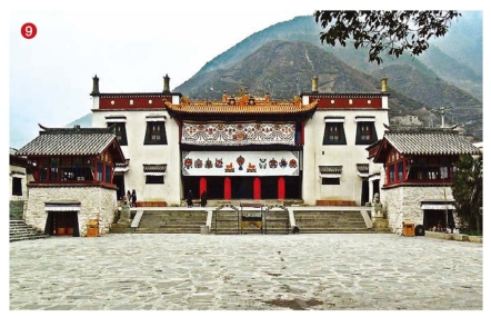 不过,今天的杂谷脑喇嘛寺已不是当年的那个寺院了,现在理县最大的喇嘛寺叫作宝殿寺(图9),规模更大,也更漂亮了。至于红军女兵们挖掘的壕沟、撞开的大门,想必已毫无踪迹了。