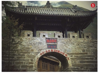 红军在薛城留下了许多石刻标语。在城门洞门楣的拱石上可清晰看见当年红军镌刻的标语:“为中国的独立自由奋斗到底!”落款是“红四军”。所以宁江门又被称为“红军门”(图5)。