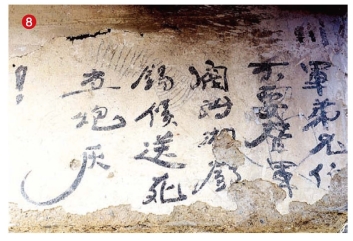 猛固桥的桥头堡上还可以看到当年红军留下的标语,有一条写着:“川军弟兄们不要替军阀刘湘邓锡侯送死当炮灰!”(图8)仔细察看,桥头堡上依稀可辨弹痕。