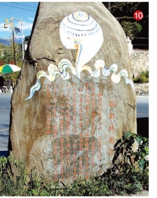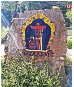 路边的一块石碑上画着吉祥如意的符号(图13),表达了藏族同胞的美好心愿。