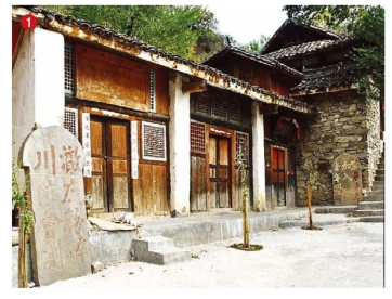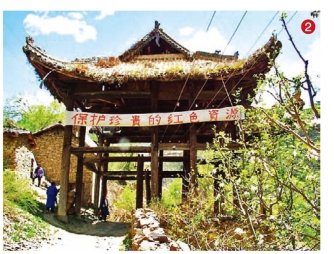 我们到达抚边乡,事先功课没有做好,在村子里,没有看到红军遗迹遗址,后来才知道,都在旧街上。有重走长征路的人在抚边看到了红军遗迹遗址。一幢加固后的老房子(不知是否是文武庙)曾经是红四方面军攻占抚边后宿营的地方(图1),门前两块石碑上被红军刻上了标语,大的一块上面刻的是“彻底粉碎川陕会剿”,稍小的一块上面刻的是“穷苦青年加入青年团!”。