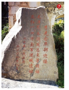 小金县人民政府在猛固桥头立有石碑,上面镌刻着红字“李先念率部迎接毛泽东、朱德、周恩来等领袖及红一、红四方面军进城遗址”(图7)。