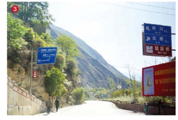 离开抚边乡,我们前行至S210省道与S303省道相交的路口时右转,向西,很快就又到了一个路口——S303省道去往小金县城的岔路口(图3)。回头看,路标指示,这个路口距离小金县城美兴镇7km、距离两河乡42km、距离达维镇25km。