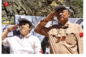 罗圩政在第二次北上时翻越夹金山,在夹金山附近与敌军发生战斗,他被子弹打中了右脚。由于当时没有药,伤口感染,人也发烧,部队将他和其他行动不便的伤员安排到了夹金山脚下的一个大溶洞里养伤。听说养伤的红军战士会跟不上队伍,只能在当地打游击,“我不想离开部队,养了3天伤后,脚刚刚可以活动了,我就开始沿着部队前进的路线追赶”。为了能够追赶上大部队,他就抄小路。“当时我身上带着一个党员证,就是凭着这个党员证,一路与沿途留下来的秘密联络员接头,从秘密联络员那里得知部队的行踪和消息。”就这样,经过20多天的紧急追赶,罗圩政终于赶上了部队。