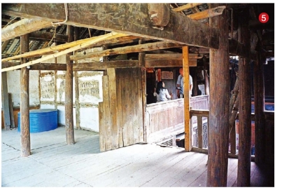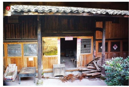 我们进入院内,院子由三面的房屋和东边的门围成很小的四合院。一位中年妇女在狭窄的厨房里忙着炒米饭(显然,是剩米饭再加工),我们的贸然造访似乎有些不太合时宜。她一听我们是红四方面军后代专程来访,马上热情起来,放下手里的锅铲,给我们指出堂屋是红四方面军总指挥部(图3)。