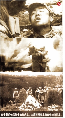 后面的记载是时隔5个多月(1935年11月),红四方面军南下到达荥经县境内,听说毛泽东的警卫班长在此牺牲,特地找到水子地掩埋胡长保的地点,将胡长保的忠骨移葬在两座古墓之间,使其得以保存下去。