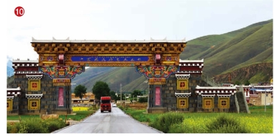 道孚被誉为“中国藏民居艺术之都”,省道上高高的牌楼(图10)展示出道孚藏居的瑰丽。