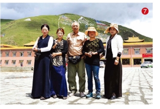 这里的康巴藏族妇女身材不一般,姐弟3人中的大弟田毅身高1.83米,可他与几位女藏民站在一起(图7)相比没有太大的优势哦!