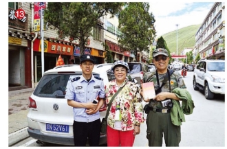 我们的运气很好!到岗亭向警察同志打听红军遗迹遗址时,遇见县政府办公室的一位年轻人在现场办公,他和一位援藏的警察小伙儿带我们到县政府不同部门寻访,遇见了知情人——道孚县委党史研究室编写的《尘封的往事——红军长征在道孚》一书编者之一,得知我们是红四方面军后代来重走长征路,她把该书(只印制了千余本)赠送给我们。她还告诉我们,如今道孚县城里能够看到的红军旧址只有2处了,红军总部机关驻扎过的灵雀寺也不是当年模样了。