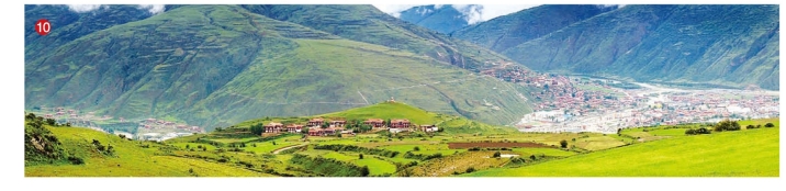 我们不敢耽搁,抓紧赶回县城新都镇。路过山头,司机师傅说,山谷里就是县城新都镇(图10)。新县城从左边的山沟里易地建到右边的山谷地带,新老县城隔着鲜水河。