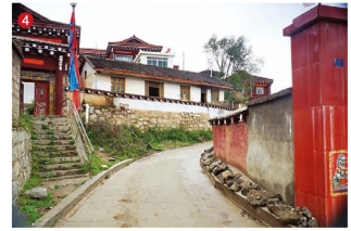 我们立刻到旁边的藏族村子里寻找朱总司令的旧居。可是走进村里一二百米了,未见一人,路过的家家户户院落都没有锁门,一是要注意风俗礼节,二是隐约能听到低沉的呜呜声(想必是藏獒的警告),我们不敢贸然入户呀!这个村子也被称为“朱德村”(图4)。