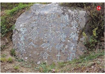当年,红军在脚木足乡孔龙一个村就筹集到7万多斤粮食。据查,在脚木足乡孔龙村,留下了红军标语“回蕃汉民族团结起来,打倒国民党、帝国主义”“没收地主官僚军阀的土地,平均分给工农穷人”(图14)。在蒲志村,也留有红军标语。