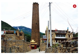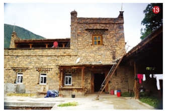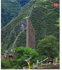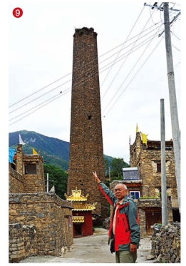 我们在白莎村里寻访。当年的白莎村(白赊村)仅有40多户人家,如今扩大了许多。红军在这里的影响显而易见,一是乡亲们都知道红军在这里的一些情况,二是大部分人听、说汉话没有问题。村子里布满碉楼啊。可能因为“卓木碉会议”是一次搞分裂的会议,所以,村内没有树碑立标。一进村就看见高大的碉楼,这是当年被称为卓木碉的两个碉楼中的八角碉楼(图9),保存完好。