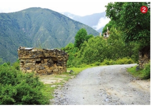狭窄的桥梁、狭窄的小道(图3),弯弯曲曲通往山里。