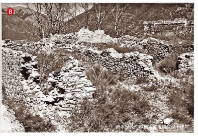 在马尔康红军长征纪念馆里,有白莎寺的残断壁垣、残存的几堵石墙的遗迹照片(图8)。