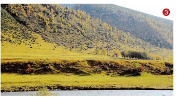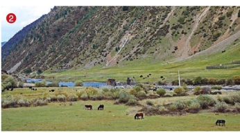 如今公路穿行在广袤的低山草甸中,依然是森林茂密,牛、马散布,河流清澈,草场遍地(图2、图3)。