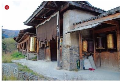 和藏族同胞打招呼得到允许后,我们如愿以偿地在小路边一家藏居前停车,藏居对面是一个转经棚(图4)。这个停车位置离索花寺是最近的。