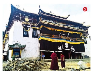 进院子走几十米,就看见索花寺(喇嘛庙)的正殿了(尚在修缮中)。这就是当年毛儿盖会议会址所在地了(图5)。