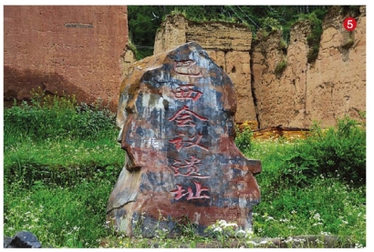 在班佑寺院遗址残墙前立着刻有“巴西会议会址”的石碑和刻有“巴西会议遗址”的水泥碑(图5)。