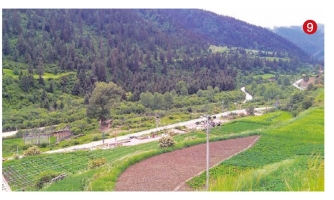 站在甲基毛泽东居所的位置,回看我们的来路(图9),这个河谷就是红一、二、四方面军长征去往甘肃的道路所在,只不过现在的道路已经拓宽,并且路面硬化成为水泥的或是柏油的了。