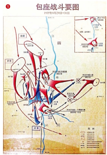 解放军出版社出版物中有“包座战斗要图”(图1)(图中日期应为1935年8月29日—9月1日)。