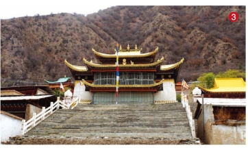 1936年8月初,红二、四方面军进入迭部地区,大致是沿着头一年中央红军陕甘支队的路线,从四川求吉寺进入迭部的达拉乡甘沟,路经卡让寺、高吉(俄界)、岗岭、勾吉寺,出达拉沟的。据说四方面军前卫总指挥李先念率先头部队在勾吉寺驻扎了10多天,还有说徐向前总指挥到勾吉寺时,连夜拜会该寺的大管家和高僧,在宣传政策的基础上,征得他们的同意后,用300枚银圆和6条枪,买下了该寺储藏的二十五六万斤粮食和两三千斤酥油及上千斤糌粑(炒面),分发给了红二、四方面军指战员。多年后,寺里的高僧回忆说,炒这么多粮食,把寺里的两口大锅都炒坏了。如今勾吉寺就在路边,经过多次改建,规模越来越大了(图3)。