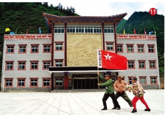 参观前,我们借用纪念馆的军旗秀了一把(图11)。