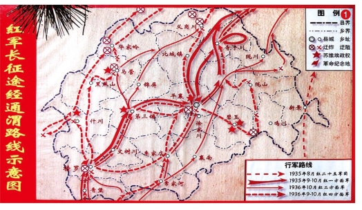 从鸳鸯镇出发,在经过文峰镇后,就进入通渭县的地界了。通渭,是一片热土!红军长征的4支队伍(红二十五军、红一方面军/陕甘支队、红二方面军、红四方面军)先后经过通渭县(图1)。