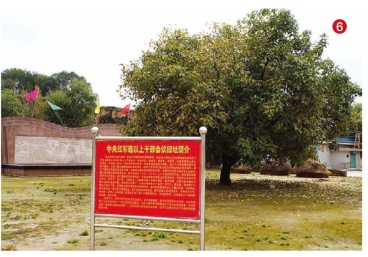 出了纪念馆大门,面对着的就是中央红军连以上干部会议会址——大核桃树周围的一块空地(图6),也是昔日榜罗镇国立小学校门前的打麦场,现在是绿地,还象征性地堆放着麦秸。