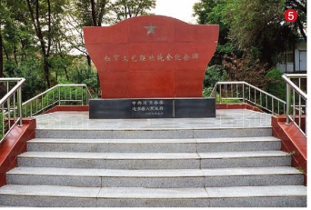 2007年,通渭县委、县政府在广场边上修建了纪念碑(图5),上题“红军文艺联欢晚会纪念碑”金色大字。