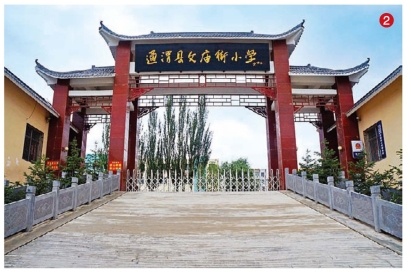 文庙街小学在县城里的文庙路北侧,比较容易看到“通渭县文庙街小学”的牌楼(图2)。(注意,学校前的路边不好停车。)