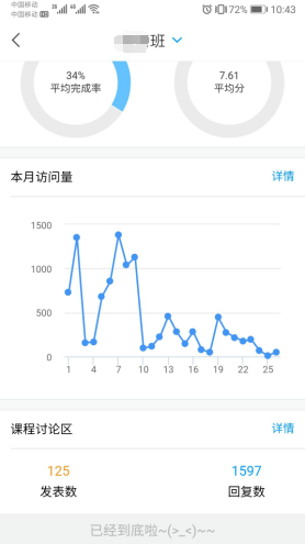 C.本月访问量。可查看备课阶段本门课程的访问量情况,包括总访问量、本周访问量、本月访问量、月访问趋势折线图、单日访问量。