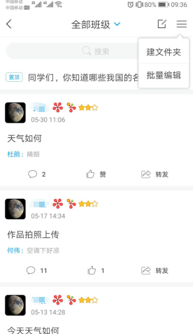 B.评价和分享。学生回复讨论主题后,支持班级内生生互评、教师评价。支持教师对学生回复的主贴和跟帖内容进行多种方式的评价,包括评分、点赞、文字、录音、视频、直播等,也可添加本地文件、云盘文件、专题收藏、笔记、群聊、小组、位置、网页链接等附件。教师可将优质的讨论内容进行收藏和转发分享。