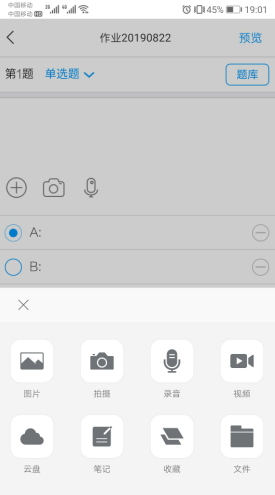 C.新建作业。点击【作业】栏目首页右上角“+”,可新建作业。支持创建多种题型,支持添加学习通特有多媒体素材内容,支持从本课程题库中添加试题。