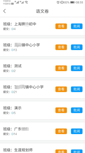 a. 点击一套作业,再点击“批阅”按钮。可对“已交”作业班级学生进行在线批阅,包括评分、批语、添加拍照照片、语音讲解,对不合格测验结果可立刻“打回重做”。