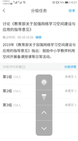 教师可点击上下翻页键遥控翻页;可使用激光笔、聚光灯功能对PPT页中重要信息进行指示;可在PPT页中直接用手指进行圈点批注操作。可收起PPT页内容,以便展示更多活动列表项。