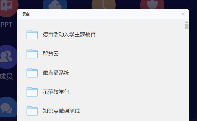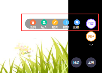 教师点击浏览器右下方【更多】按钮,点击【PPT】,选取一个本次课教学用的PPT,即可完成准备工作。
