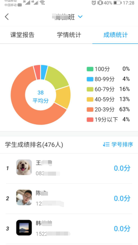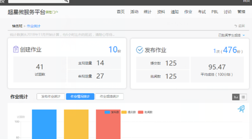 F.作业统计、考试统计。教师可在【作业统计】、【考试统计】中查看相应的整体数据情况。