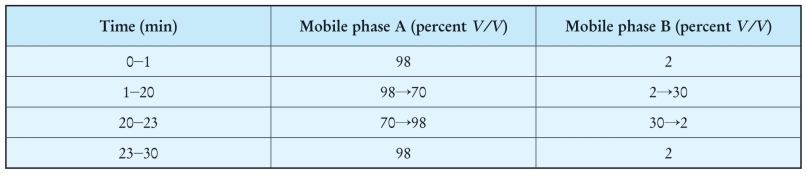 Reference solution (e)Dilute 1.0 ml of reference solution (c)to 20.0 ml with mobile phase A.