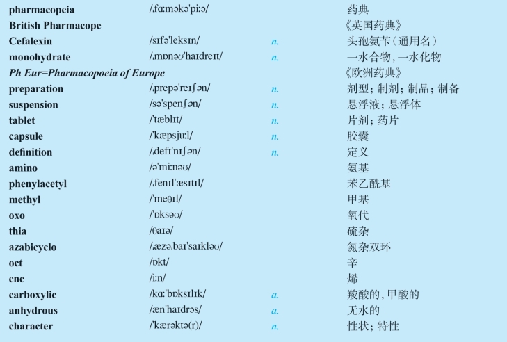 1.题录部分:Cefalexin Monohydrate是主标题;