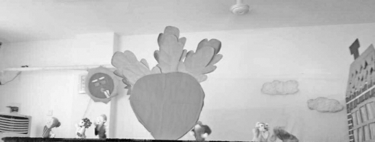 后幕布《童话剧拔萝卜》;手偶(老爷爷、老奶奶、小姑娘、小狗、小猫、小老鼠、大嘴艾莫、玩具毛毛虫各一个);带操作杆会飞的小鸟