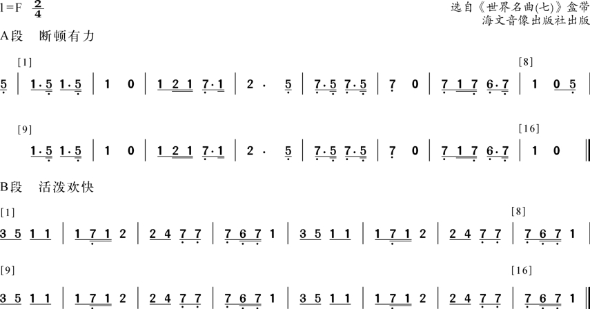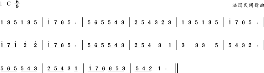 拍的曲子;另一种是小团体玩法,这种玩法的音乐选自法国民间舞曲,是一段