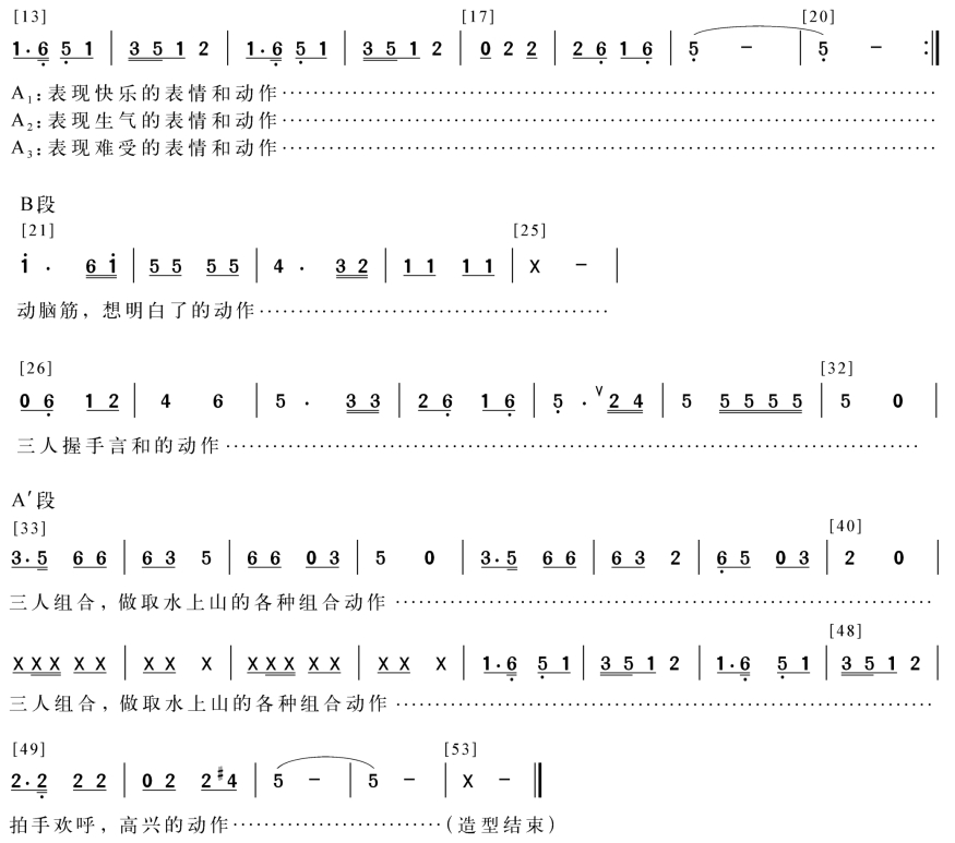 本节教学属于奥尔夫动作造型教学的最后一节,学习重点放在音乐戏剧与音乐游戏两个方面。