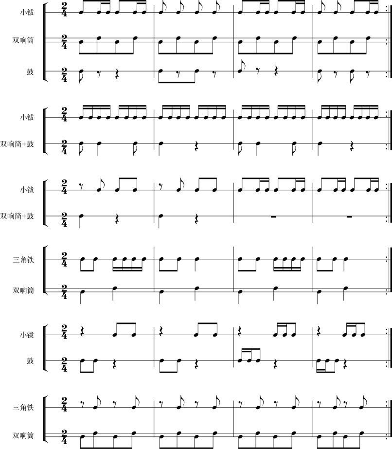 第一遍:小镲和三角铁合奏;