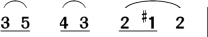 ●“连音”吹奏法:连接2个或2个以上的音时,如: