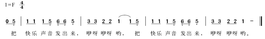(2)跟随教师演唱歌曲,反复至唱准曲调,唱好每句句首的弱起节奏。