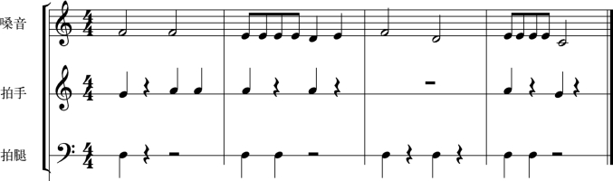 [4]参考:李妲娜,修海林,尹爱青.奥尔夫音乐教育思想与实践[M].上海:上海教育出版社,2009:109-111.