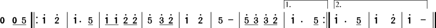 提示:五声调式,即只包含do、re、mi、sol、la五音的调式,通常根据乐曲最后一个音判断它的调式主音,并从此音出发寻找伴奏的音程或和弦,而其乐曲的前奏和尾奏常用以主音为根音构成的五度音程演奏。奥尔夫音乐教学法常用五声调式乐曲进行教学,这首乐曲即为一例。